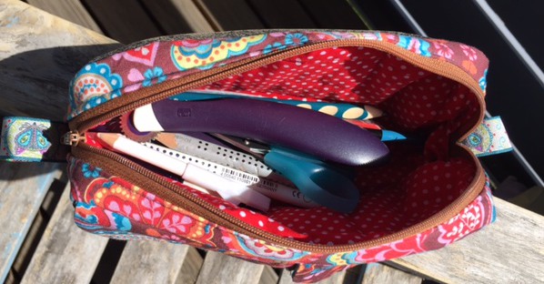 Das Täschchen ist recht easy zu nähen, (wenn man nicht gerade mit Kunstleder auf dem Kriegsfuß und so…) und erfordert vor allem tatsächlich nicht einen einzigen Zentimeter Schrägband. Hurra!