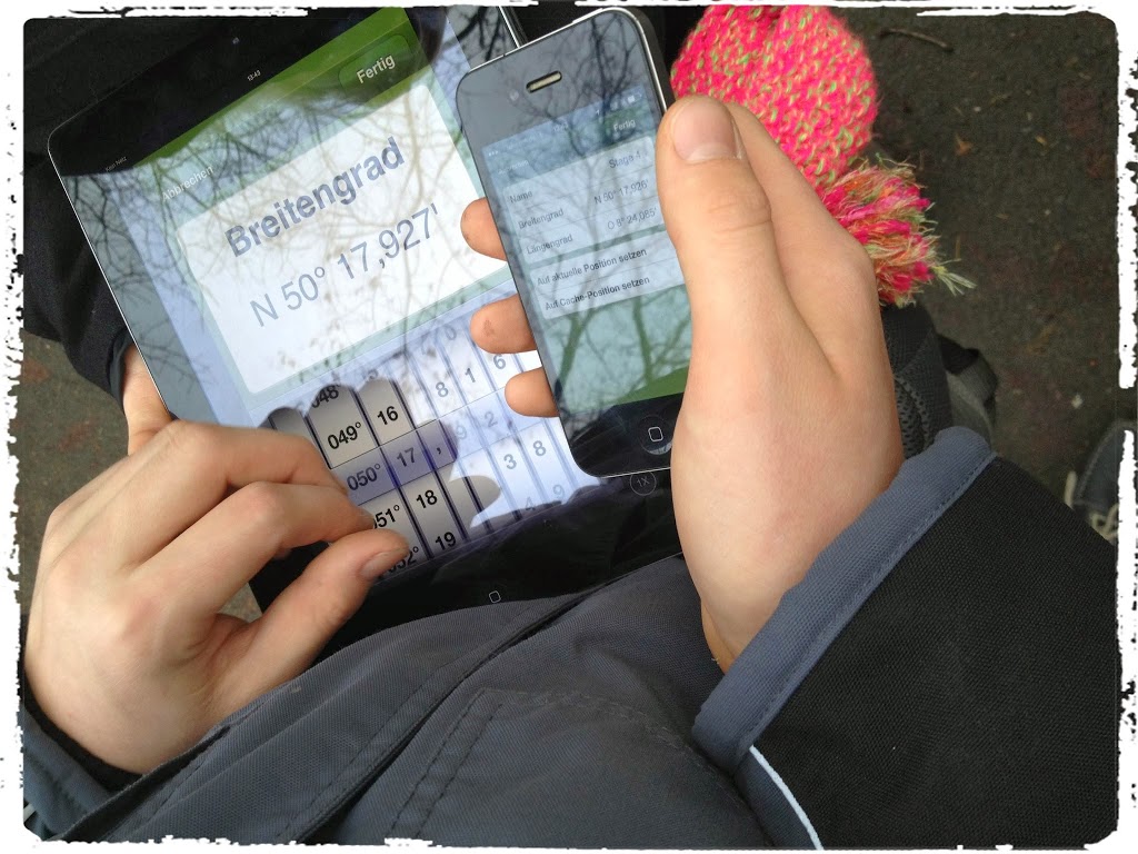Danach zur Schulweihnachtsfeier mit Geocaching
