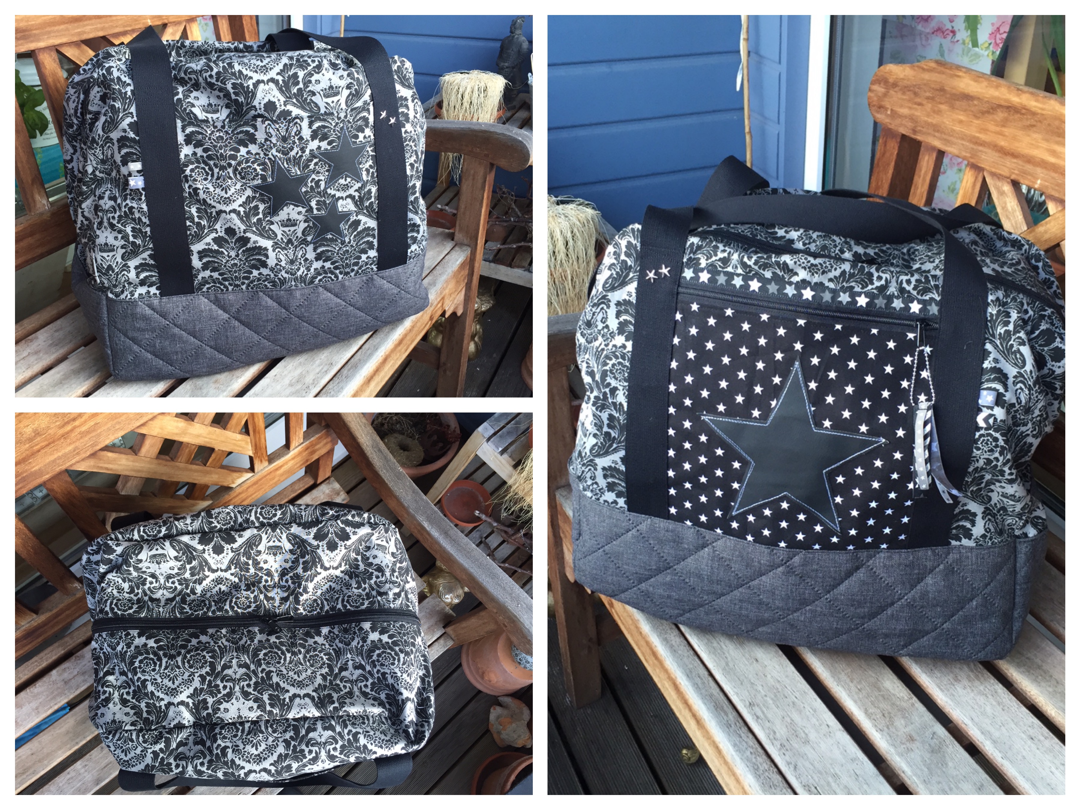 Von der Taschenspieler 3 von Farbenmix habe ich mir die Reisetasche xxl genäht und ich bin schwer begeistert. Die Tasche ist durch den langen Reißverschluß super zu befüllen und ich krieg sogar ein komplettes Nähequipment in kleinen Kisten (Stoffe, Reißverschlüsse, Webbänder, Vlies, Stoffreste für Applis undsoweiter) unter, aber dazu später mehr. Erstmal die Tasche: